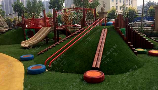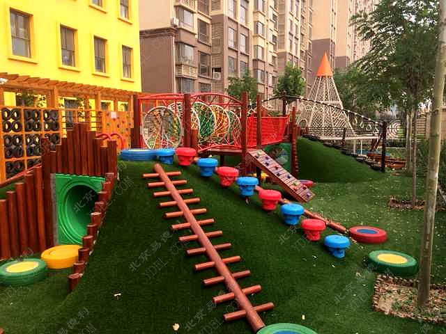 蒙正幼兒園戶外整(zhěng)體設計獨特新穎的土堡繩網橋梁設計,兼具攀爬(pá)、鑽洞等功能組合;全手工編織“巫師(shī)帽(mào)”網繩,新(xīn)奇好玩;采用進口非洲紅梨木各種拓展設備(bèi),外觀大(dà)方、防裂防潮功能強;