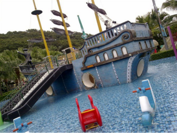 圓明新園裏(lǐ)麵的水上樂園,去的時候天開始涼了,水上樂園沒開,但是看到了海盜船什麽的,感覺還是很不錯的。